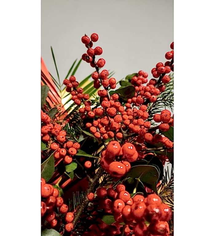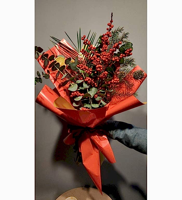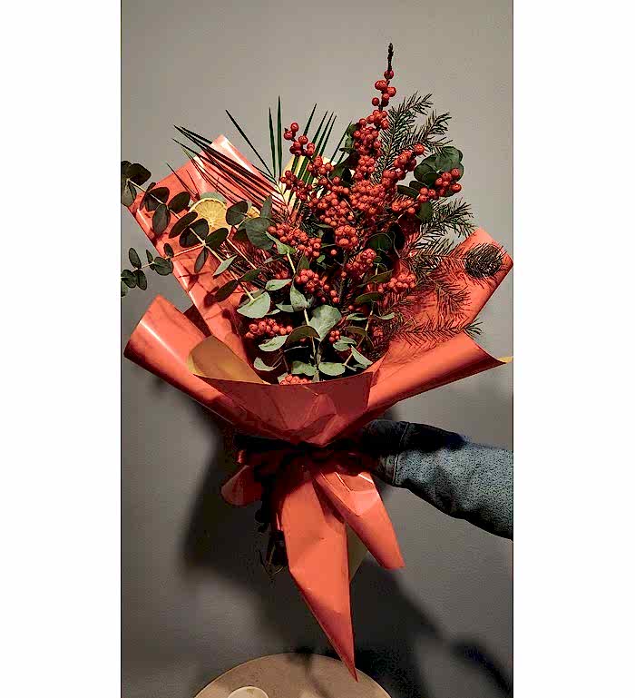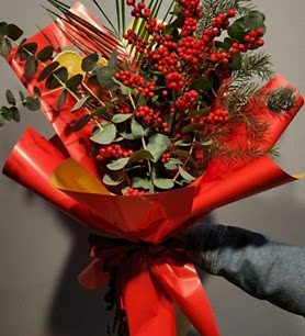 Yeni yılın enerjisini yansıtan bu premium yılbaşı aranjmanı; kırmızının sıcaklığı, çam dokusunun tazeliği ve modern yılbaşı detayları ile özenle hazırlanmış özel bir tasarımdır. Hem hediye olarak hem de ev–ofis dekorasyonunda şık bir atmosfer yaratmak için ideal olan bu yılbaşı çiçeği; estetik görünümü, kaliteli materyalleri ve lüks tasarımı ile yeni yıl ruhunu sevdiklerinize en zarif şekilde ulaştırır. Ankara içi aynı gün teslimat ile yılbaşı sürprizlerinizi hızlıca tamamlayabilirsiniz.