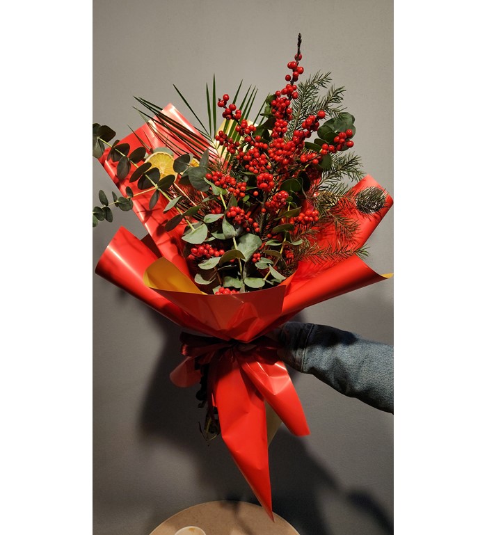 Yeni yılın enerjisini yansıtan bu premium yılbaşı aranjmanı; kırmızının sıcaklığı, çam dokusunun tazeliği ve modern yılbaşı detayları ile özenle hazırlanmış özel bir tasarımdır. Hem hediye olarak hem de ev–ofis dekorasyonunda şık bir atmosfer yaratmak için ideal olan bu yılbaşı çiçeği; estetik görünümü, kaliteli materyalleri ve lüks tasarımı ile yeni yıl ruhunu sevdiklerinize en zarif şekilde ulaştırır. Ankara içi aynı gün teslimat ile yılbaşı sürprizlerinizi hızlıca tamamlayabilirsiniz.