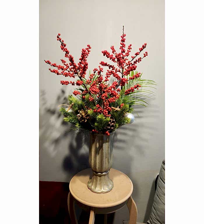 Yeni yılın enerjisini yansıtan bu premium yılbaşı aranjmanı; kırmızının sıcaklığı, çam dokusunun tazeliği ve modern yılbaşı detayları ile özenle hazırlanmış özel bir tasarımdır. Hem hediye olarak hem de ev–ofis dekorasyonunda şık bir atmosfer yaratmak için ideal olan bu yılbaşı çiçeği; estetik görünümü, kaliteli materyalleri ve lüks tasarımı ile yeni yıl ruhunu sevdiklerinize en zarif şekilde ulaştırır. Ankara içi aynı gün teslimat ile yılbaşı sürprizlerinizi hızlıca tamamlayabilirsiniz.