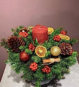 1 Adet simli mum ve diğer yılbaşı süsleri bulunmaktadır.