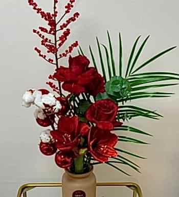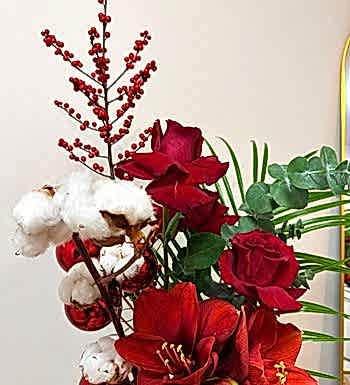 Yeni yılın enerjisini yansıtan bu premium yılbaşı aranjmanı; kırmızının sıcaklığı, çam dokusunun tazeliği ve modern yılbaşı detayları ile özenle hazırlanmış özel bir tasarımdır. Hem hediye olarak hem de ev–ofis dekorasyonunda şık bir atmosfer yaratmak için ideal olan bu yılbaşı çiçeği; estetik görünümü, kaliteli materyalleri ve lüks tasarımı ile yeni yıl ruhunu sevdiklerinize en zarif şekilde ulaştırır. Ankara içi aynı gün teslimat ile yılbaşı sürprizlerinizi hızlıca tamamlayabilirsiniz.