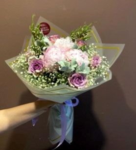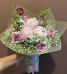 İçerisinde 6 Adet Lila Gül 3 Adet Sarah Şakayık Bulunmaktadır.
