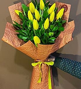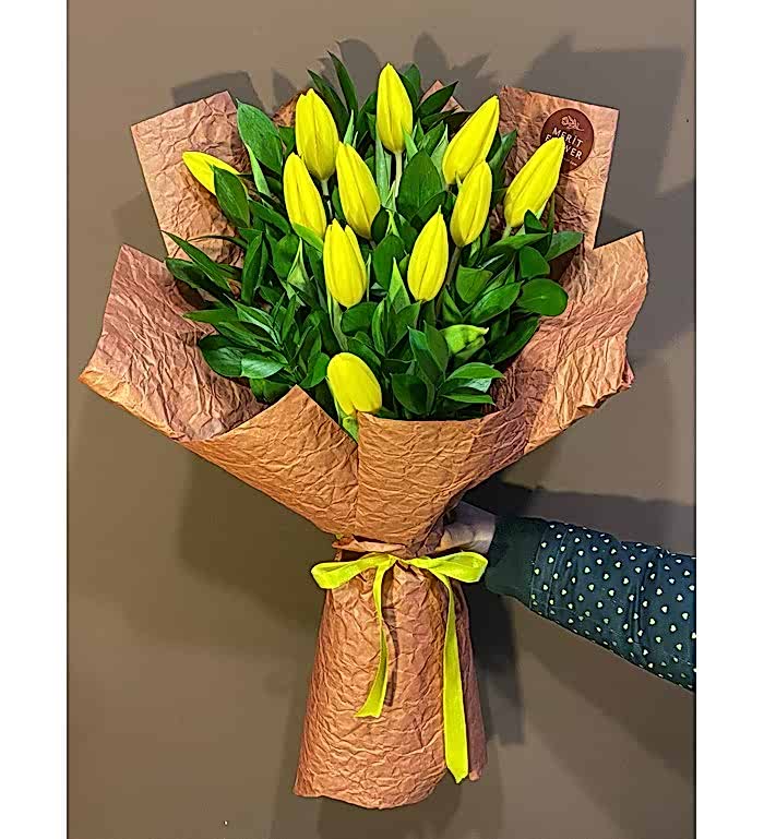 İçerisinde 10 adet sarı ithal lale bulunmaktadır.