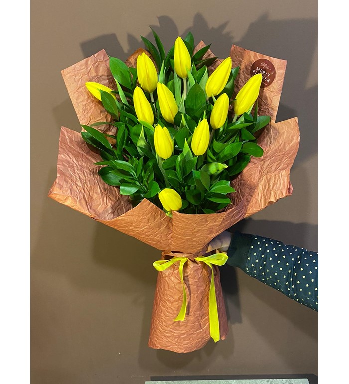 İçerisinde 10 adet sarı ithal lale bulunmaktadır.