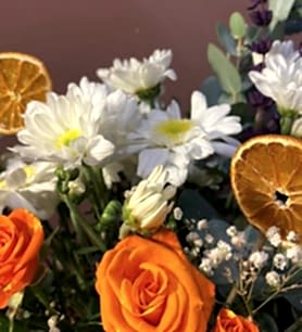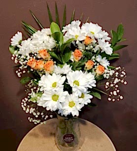 Vazo (şeffaf,siyah,kırmızı)İçerisinde Beyaz Papatya & Renkli Çardak Güller