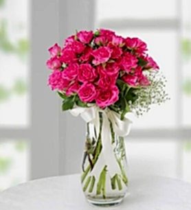 Vazo şeffaf,siyah,kırmızı)İçerisinde Pembe Çardak Güller Tatlılığıyla Cezbediyor.