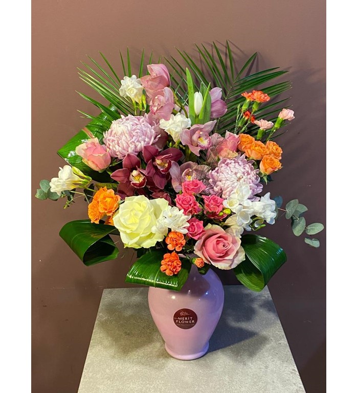 Vazoda Rengarenk Tasarım Çiçekler | Merit Flower