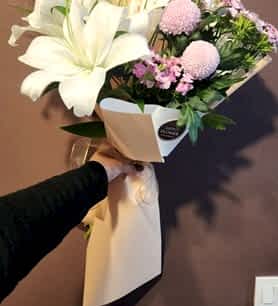 İçerisinde 1 adet lilyum ( Pembe ve ya beyaz renk ) 1dal da en az 3 tomurcuk çiçek bulunurd