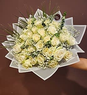 içerisinde 41 adet ithal beyaz gül bulunmaktadır.